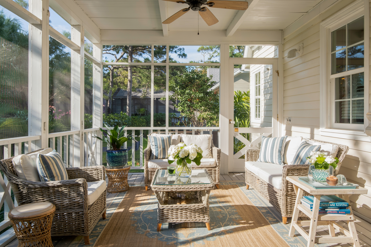 The Southeast’s beautiful spring and fall weather is often accompanied by our fair share of mosquitoes and other pests. A screened porch gives you the best of both worlds: fresh air and views without the bugs. For even more versatility, consider a three-season room with: